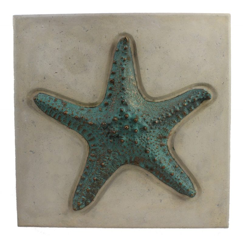 Starfish Wall Plaque, Verde Bronze Finish Shell with Stone Square 20″