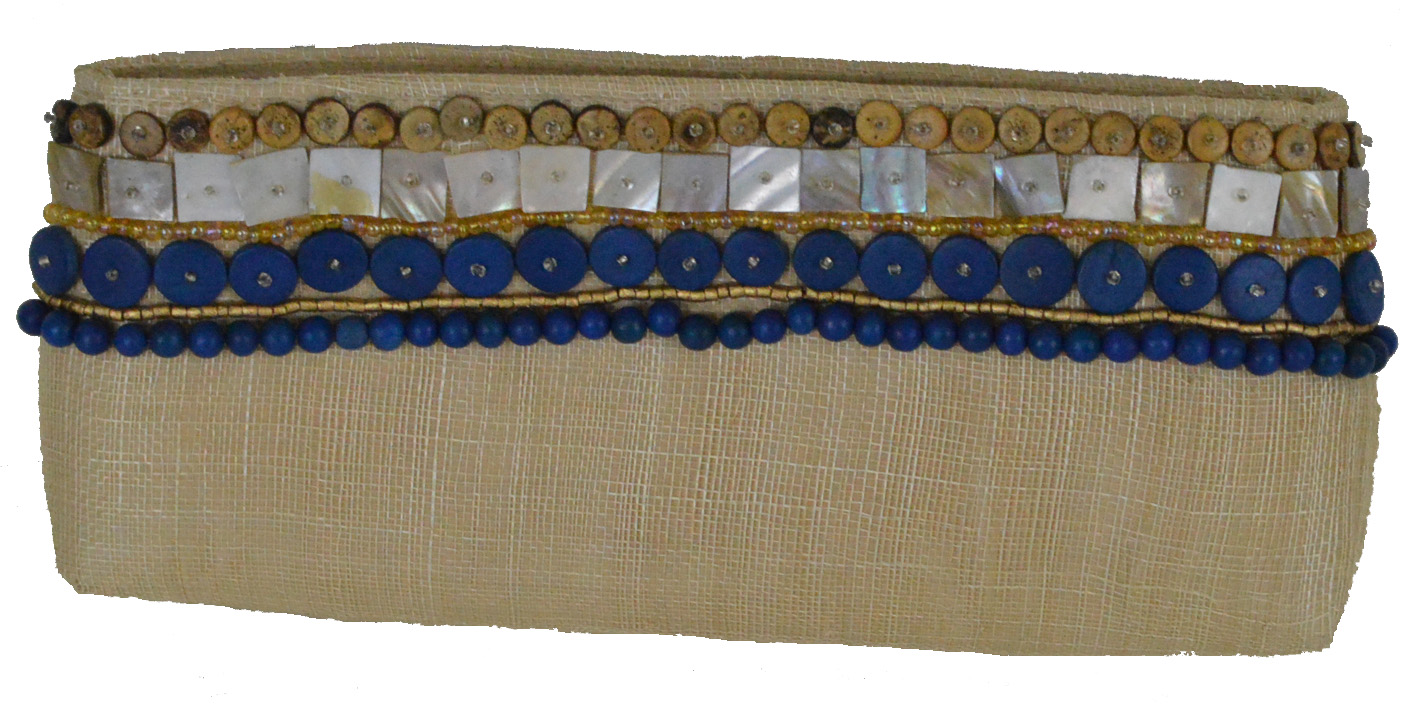 12″L Tahiti Natural Blue Clutch Handbag with Seashell and Bead Inlay