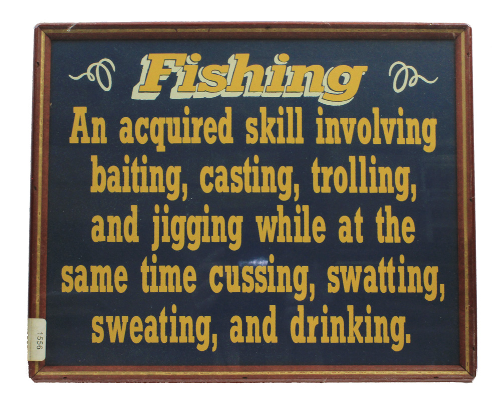 This 14″ Humorous Fishing Definition Wall Sign is made of wood and measures approx. 14″L x 11″H x .75″W. Features a humorous definition that couldn’t be more true: “An acquired skill involving baiting, casting, trolling, and jigging while at the same time cussing, swatting, sweating, and drinking.” Hangs easily on the wall using the provided keyhole on the back. *NOTE: Sign is meant to look distressed.*