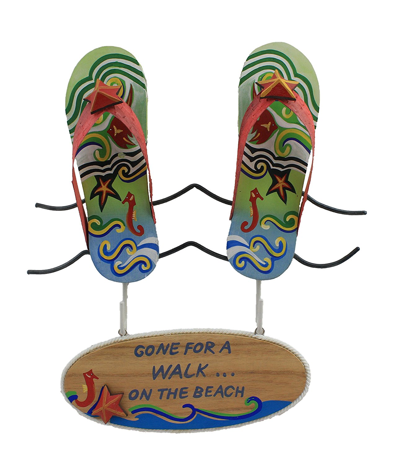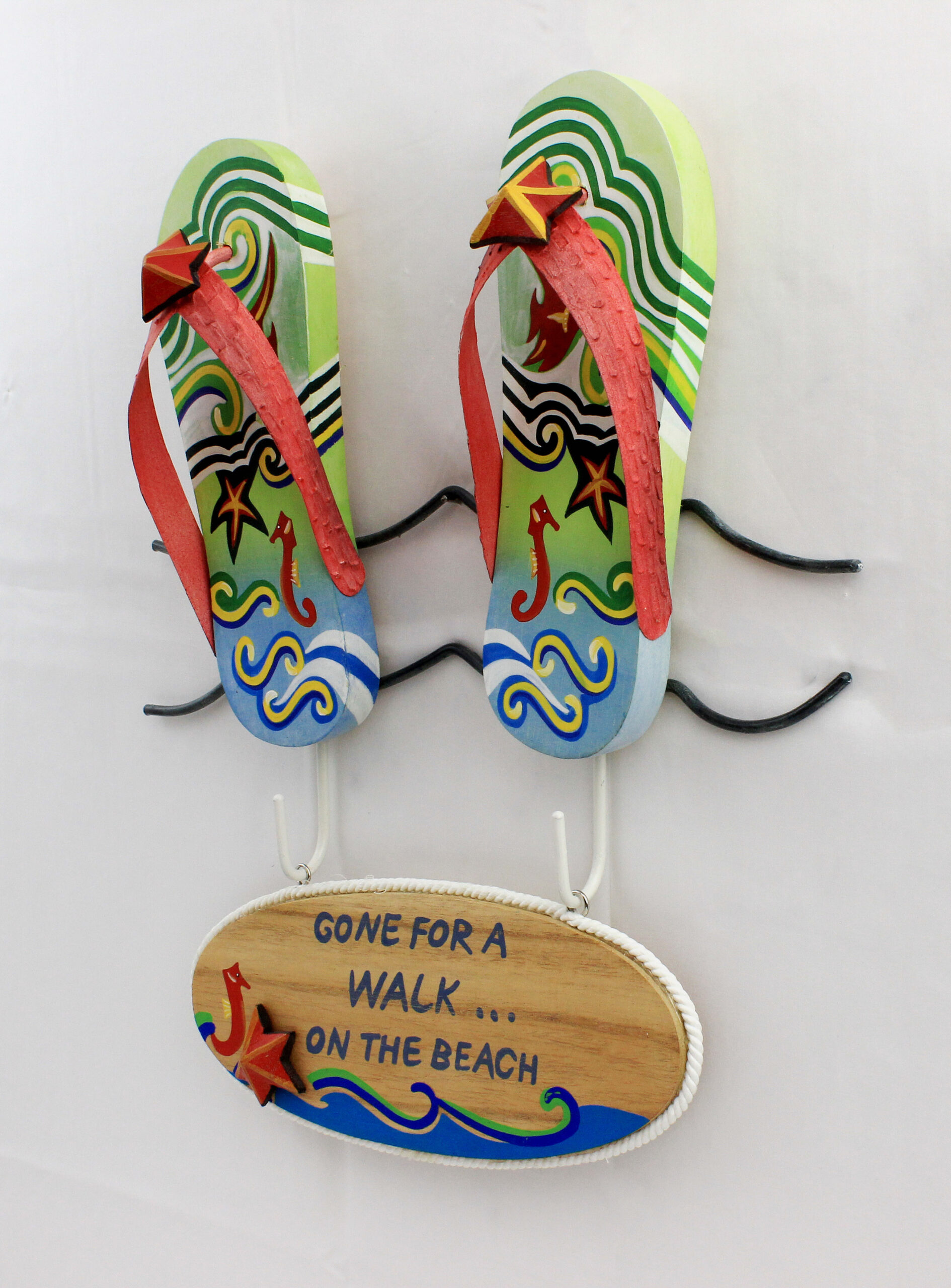 14″H Wooden Gone for a Walk on the Beach Flip Flops Wall Decor – Tropical Print