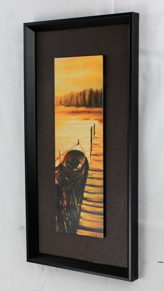 15.75″ Wooden Boat Pier Scene Painting – Framed and Matted