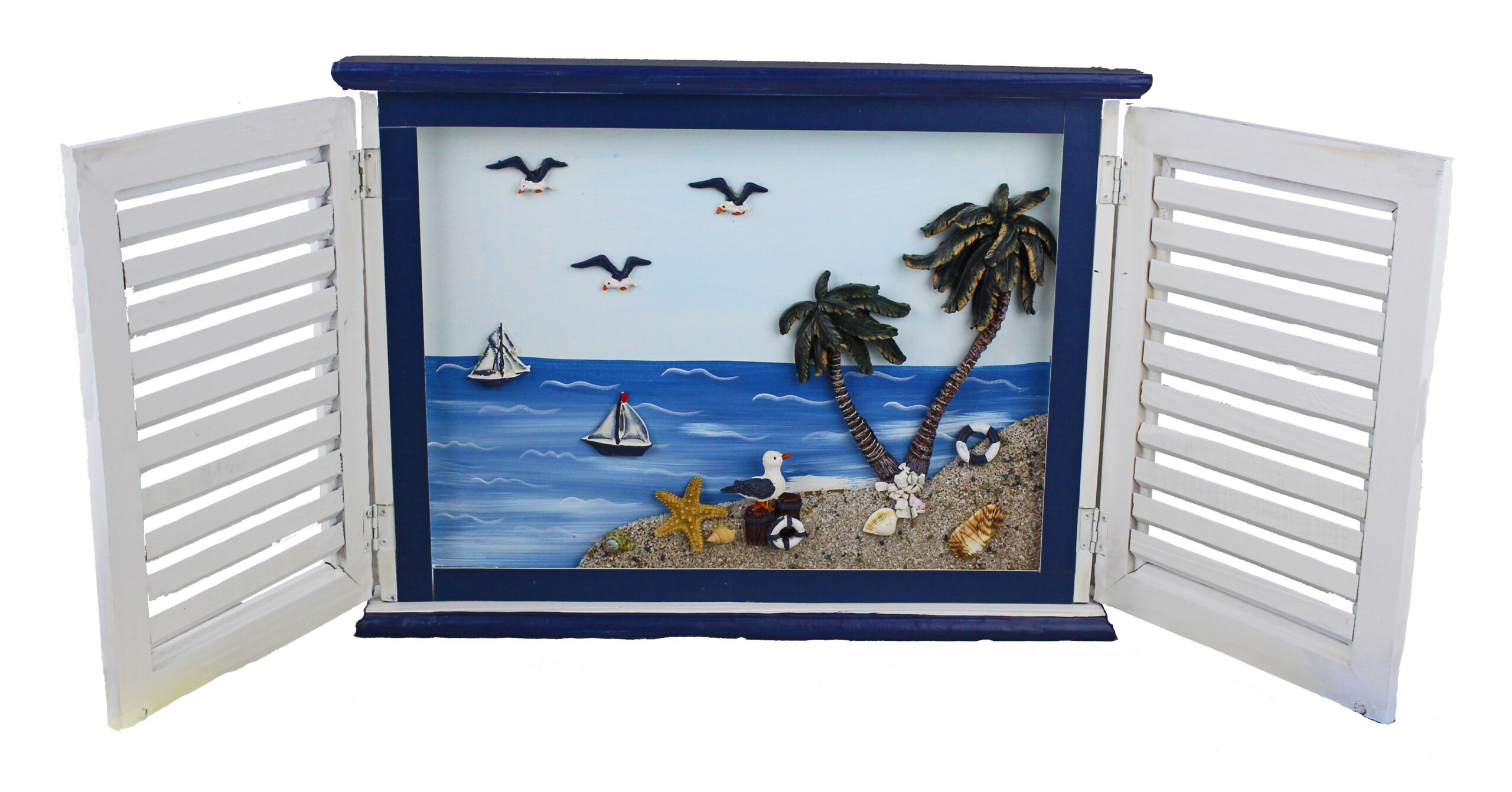 15.75″l Ocean View Scene Wooden Opening/Closing Window Shutters – Wall Decor