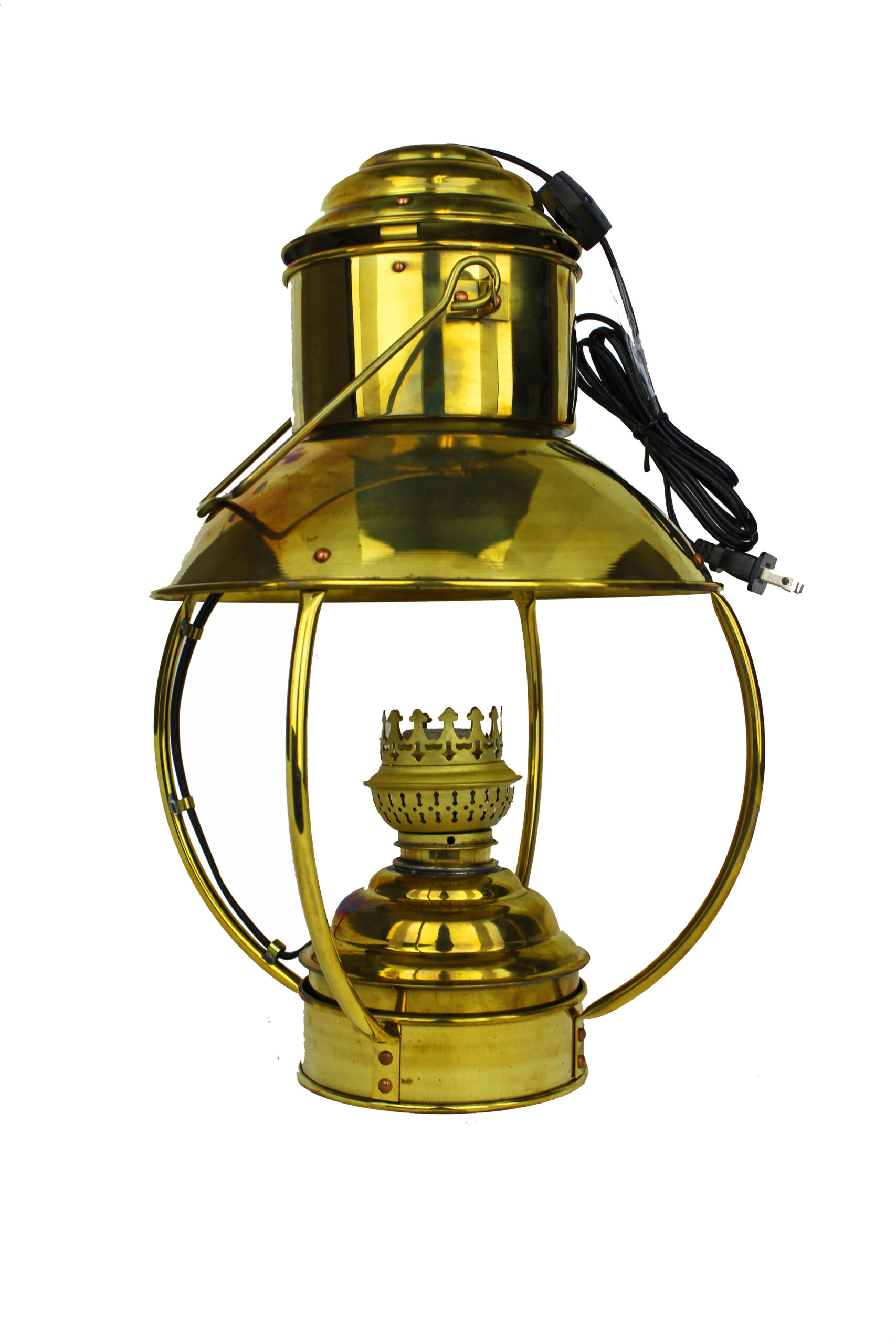 This 16.5″H Hanging Electric Lamp would make a great addition to your nautical themed bar or bedroom! Made of solid brass, this lamp plugs directly into the wall. Measures approx. 16.5″H x 10″L. Hangs easily using the movable handle at the top.