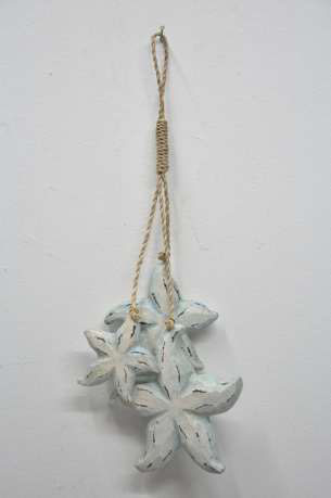 This 16”H White Wooden 3 Piece White Starfish on a Rope Hanging Decor would make a great addition to any room in your home. This item is made of wood and measures approx. 16” in total height. Gorgeous distressed white painted finish. Hangs easily using the provided rope. Place this item in your bar, beach house, or in any other nautical themed room you can imagine.