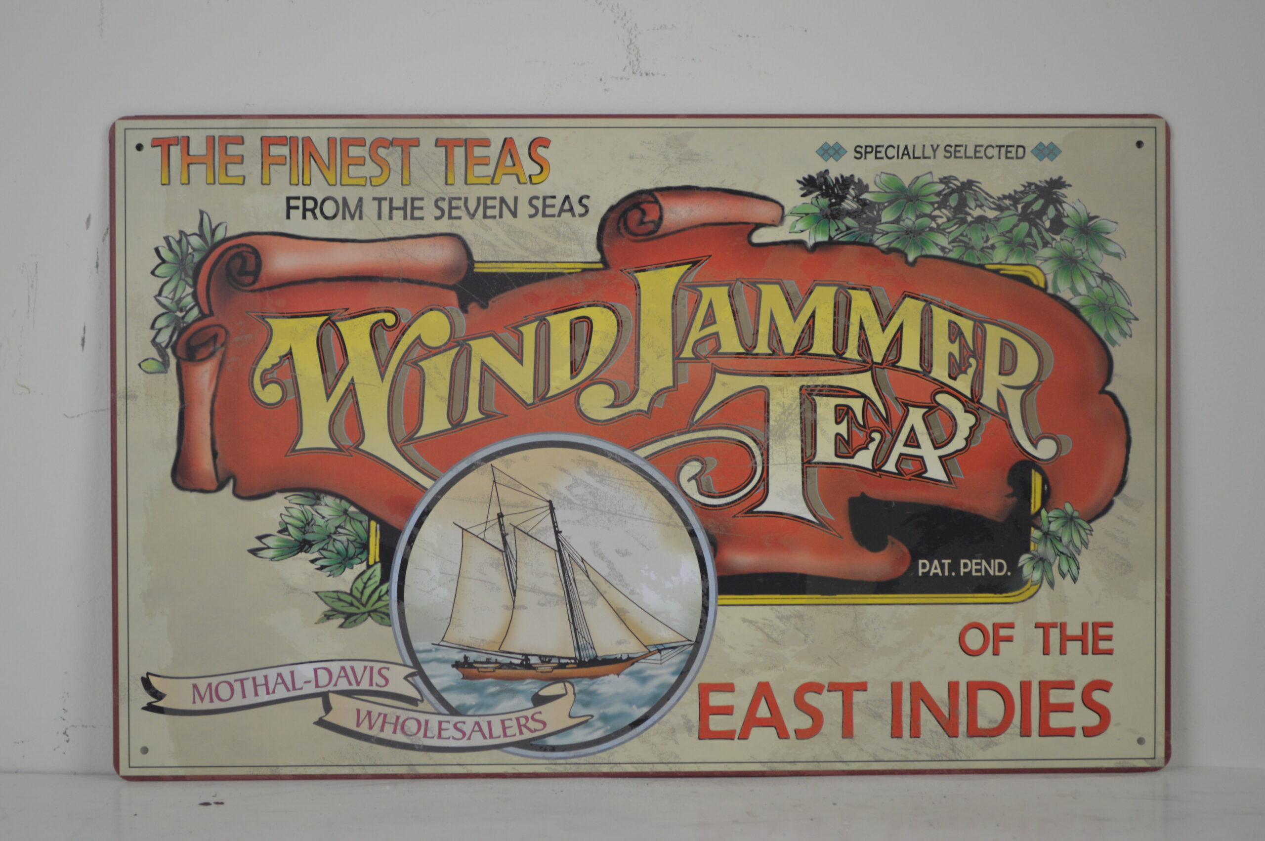 This 16″L Wind Jammer Vintage Metal Tea Sign would make an awesome addition to any room in your home. Made of metal, this item measures approx. 16″L x 10″H X .2″W. Features a vintage look and says, “The Finest Teas from the Seven Seas” and “Wind Jammer Tea of the East Indies”. Mounts easily to the wall using the provided screw holes (mounting hardware is not included). Hang this item in your bar, beach house, or in any other nautical themed room you can imagine.