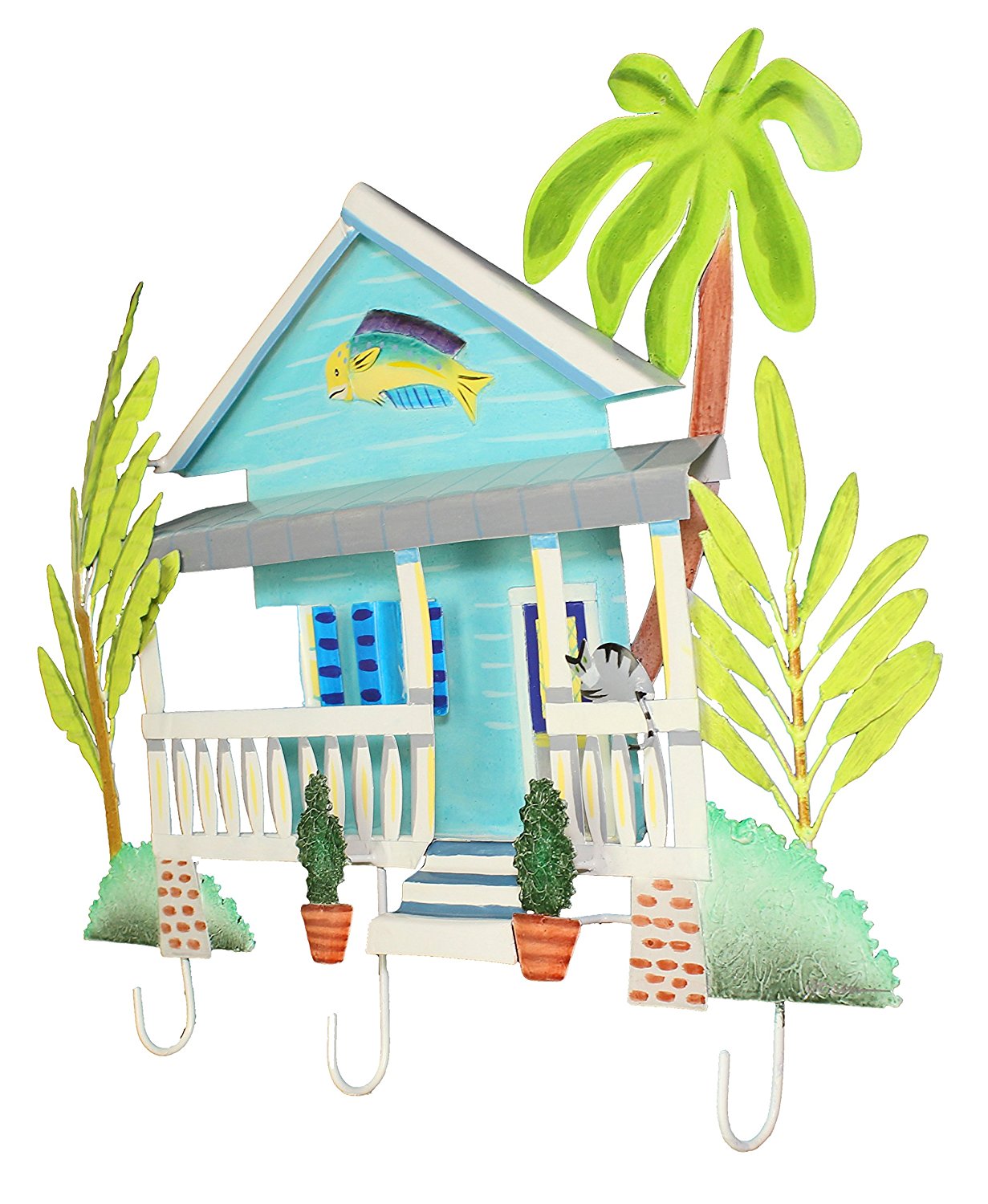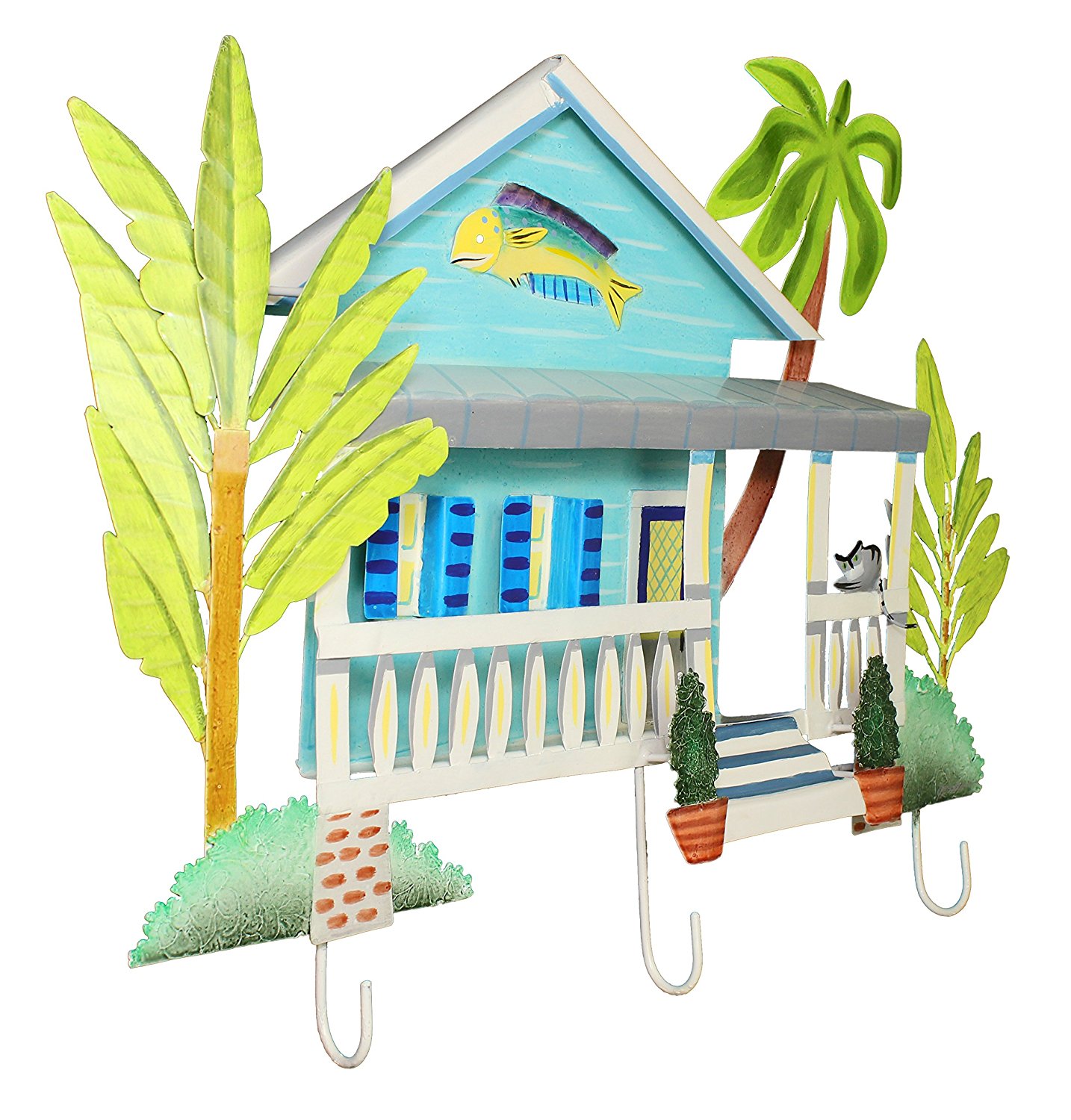 19″H Metal Blue Key West Beach House Wall Hooks – 3 Prongs
