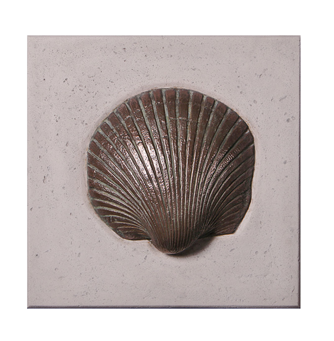 20″ Clam Shell Wall Plaque, Bronze Shell, Roman Stone Square Base