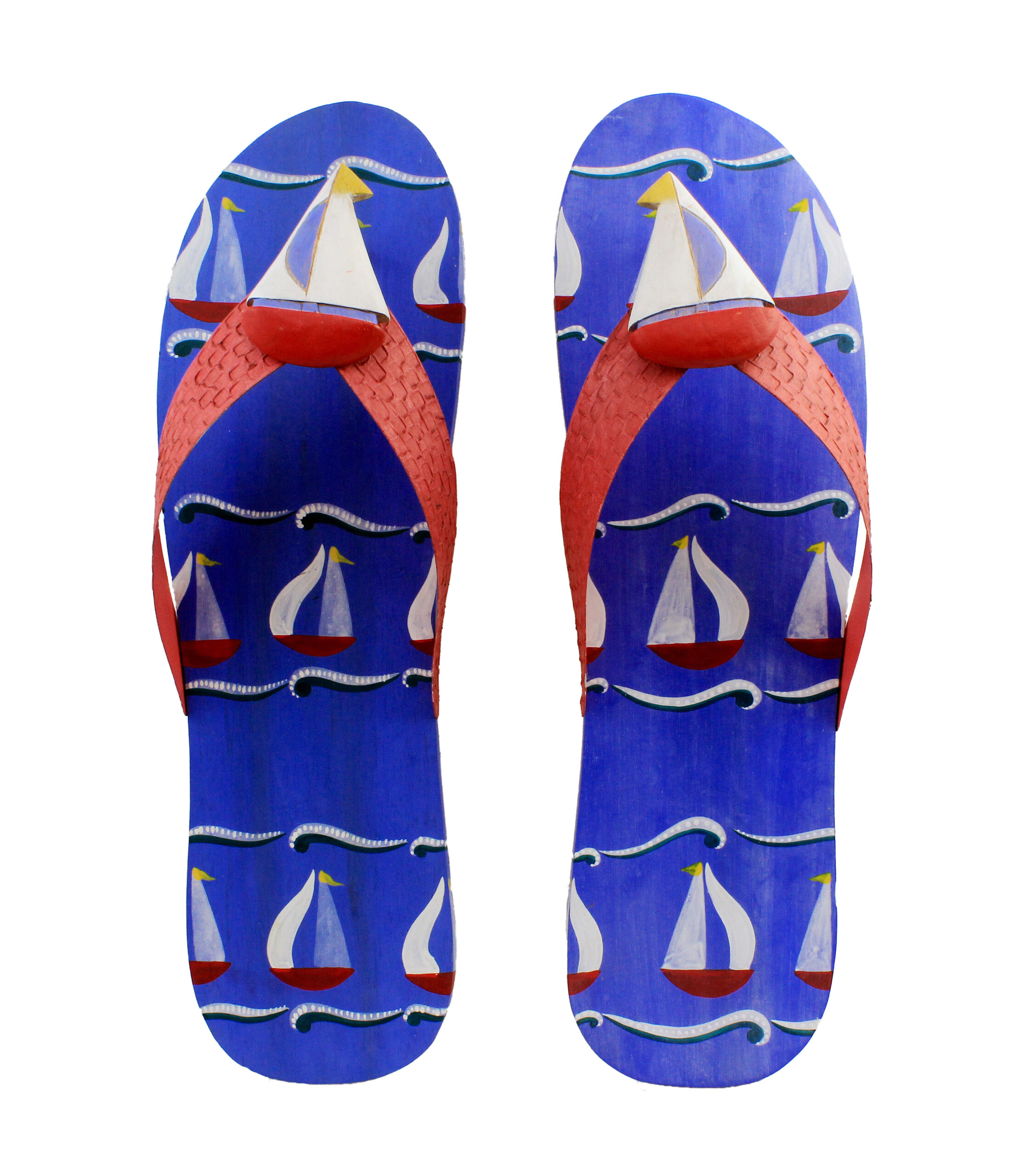 27.5″H Wooden Pair of Flip Flops with Sailboat Print Wall Decor