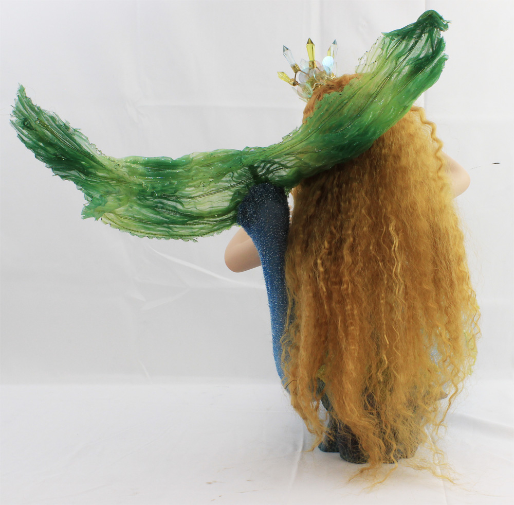 This 32″H Porcelain Fantasy Mermaid Doll is made of porcelain and cloth. This collectors doll is colored with gorgeous shades of blue and green and measures approx. 32″L. While sitting, this doll measures approx. 22″H. This high quality doll would make a gorgeous addition to your collection! This item is brand new in it’s original box (has been opened to take pictures).