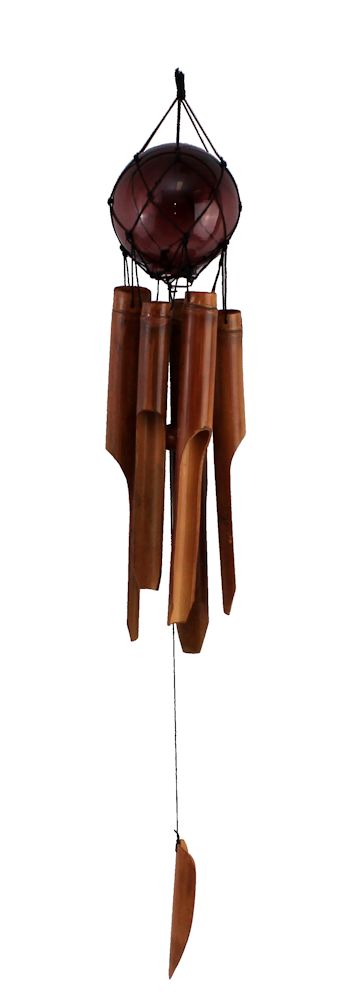 This 33″ Purple Glass Buoy Large Hanging Wind Chime features a gorgeous purple glass buoy along with wooden chimes that dangle down to create a beautiful sound. Hangs easily using the hook at the top! Measures approx. 33″H.