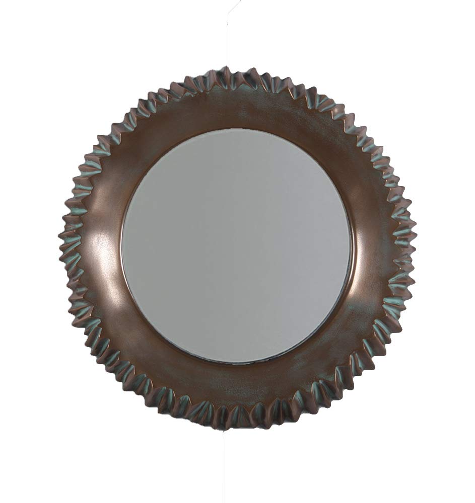 With the ability to open up a room, let the light bounce around, and lend style to your space, mirrors are must-haves for any abode. Take this one for example: crafted from fiberglass resin, its frame features a stunning hand-rubbed verde bronze finish and gorgeous detailing to make this piece a part of your home. Talk about a work of art, our handcrafted mirror will brighten up your day every time you look at it. Or at least help you to not have a bad hair day. Mounts easily to the wall using the provide key hole in the back. Measures approx. 26.5″D x 3″W.
