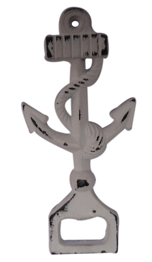 Anchor Shaped Wall Mount Bottle Opener Distress White Iron