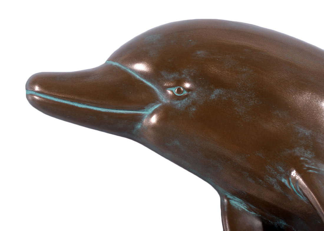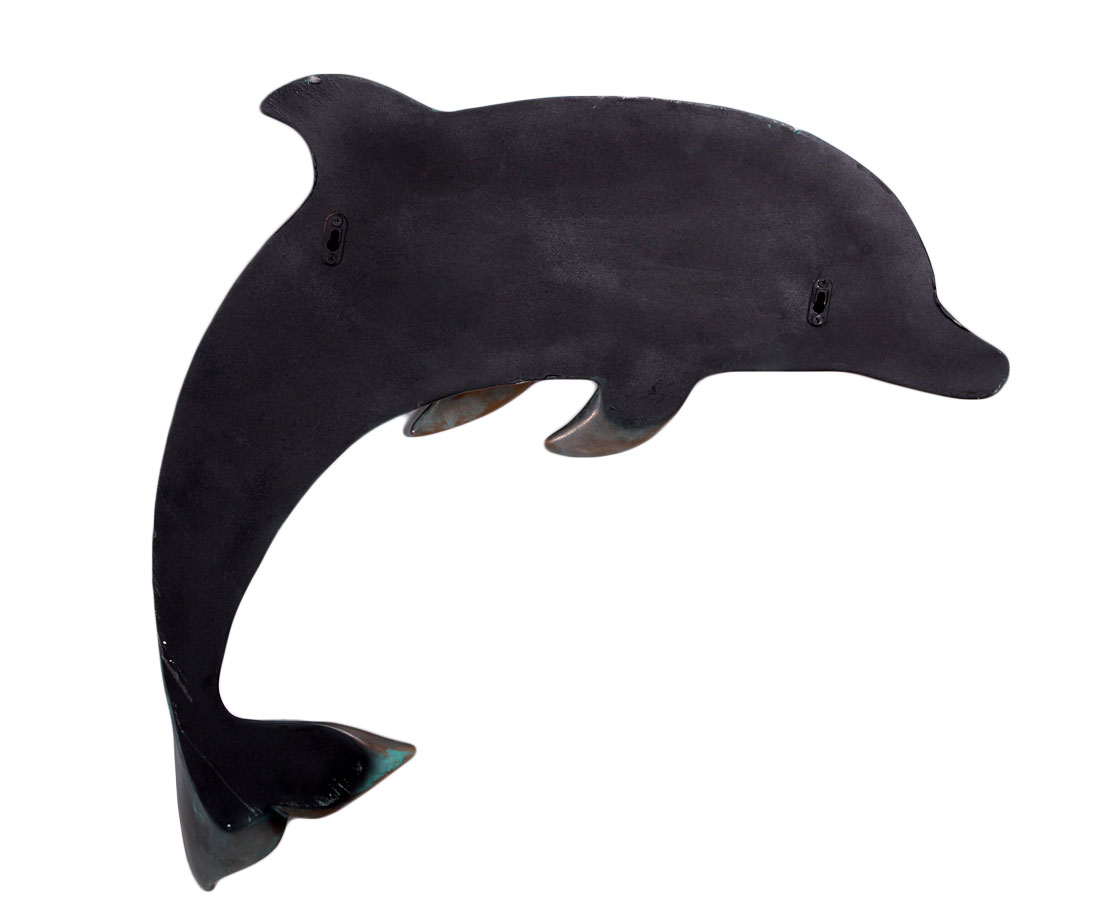 This playful Bronze Finish Dolphin Wall Mount Decor Figure would make a fun, yet elegant, addition to any space. This item is made of fiberglass resin with a gorgeous, hand-rubbed real metallic bronze finish. Mounts easily to the wall by the keyhole hangers in the back (mounting hardware is not included). Suitable for indoor and outdoor use. Please be advised that if placed outdoors this pierce’s patina will deepen over time, so we recommend applying a coat of clear polyurethane as needed to protect it from the elements.This item measures approx. 36″H x 7.25″W x 24.75″L.
