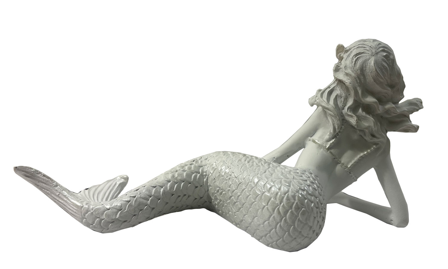 Fancy That Laying Mermaid Figurine White Pearl Finish Decorative Accent