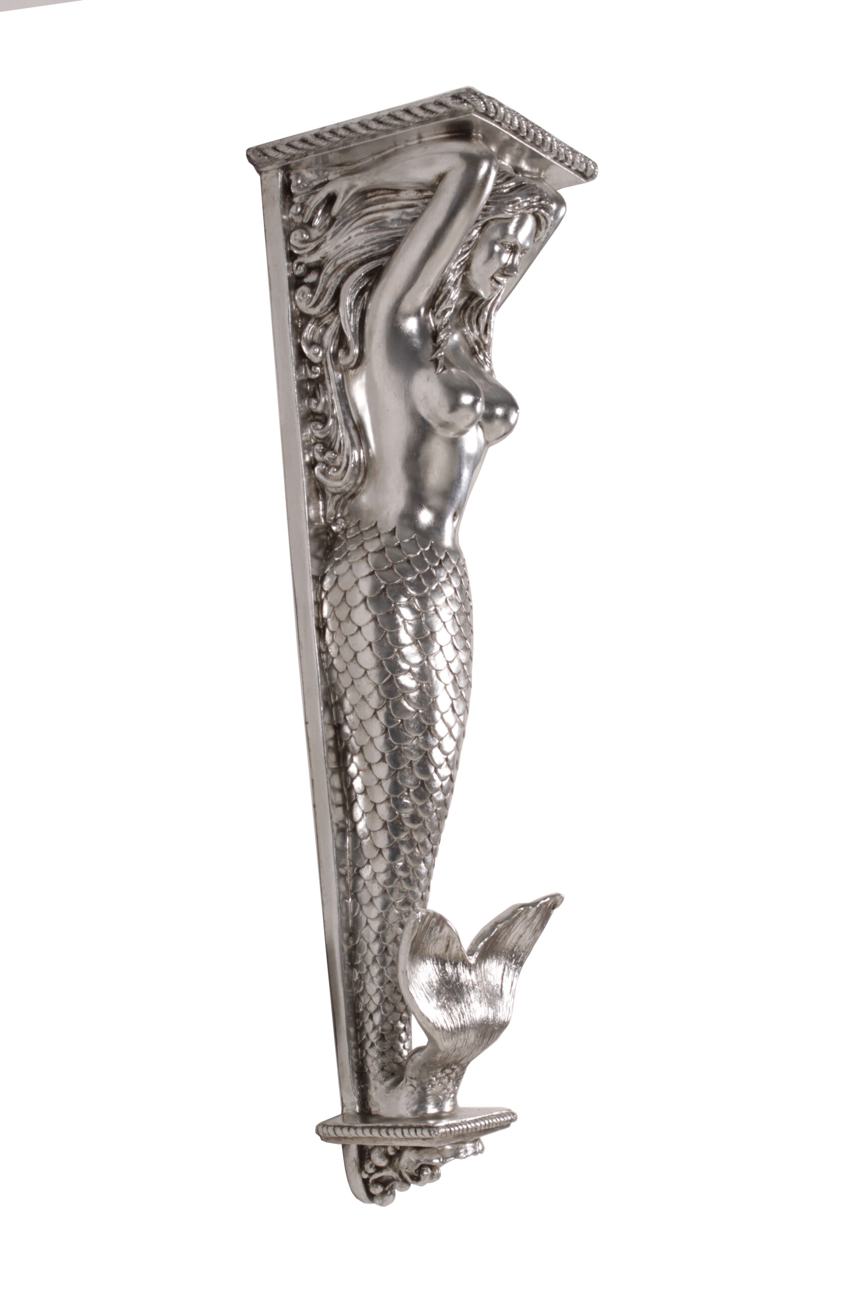 Large Mermaid Pilaster 43″H Silver Leaf Finish