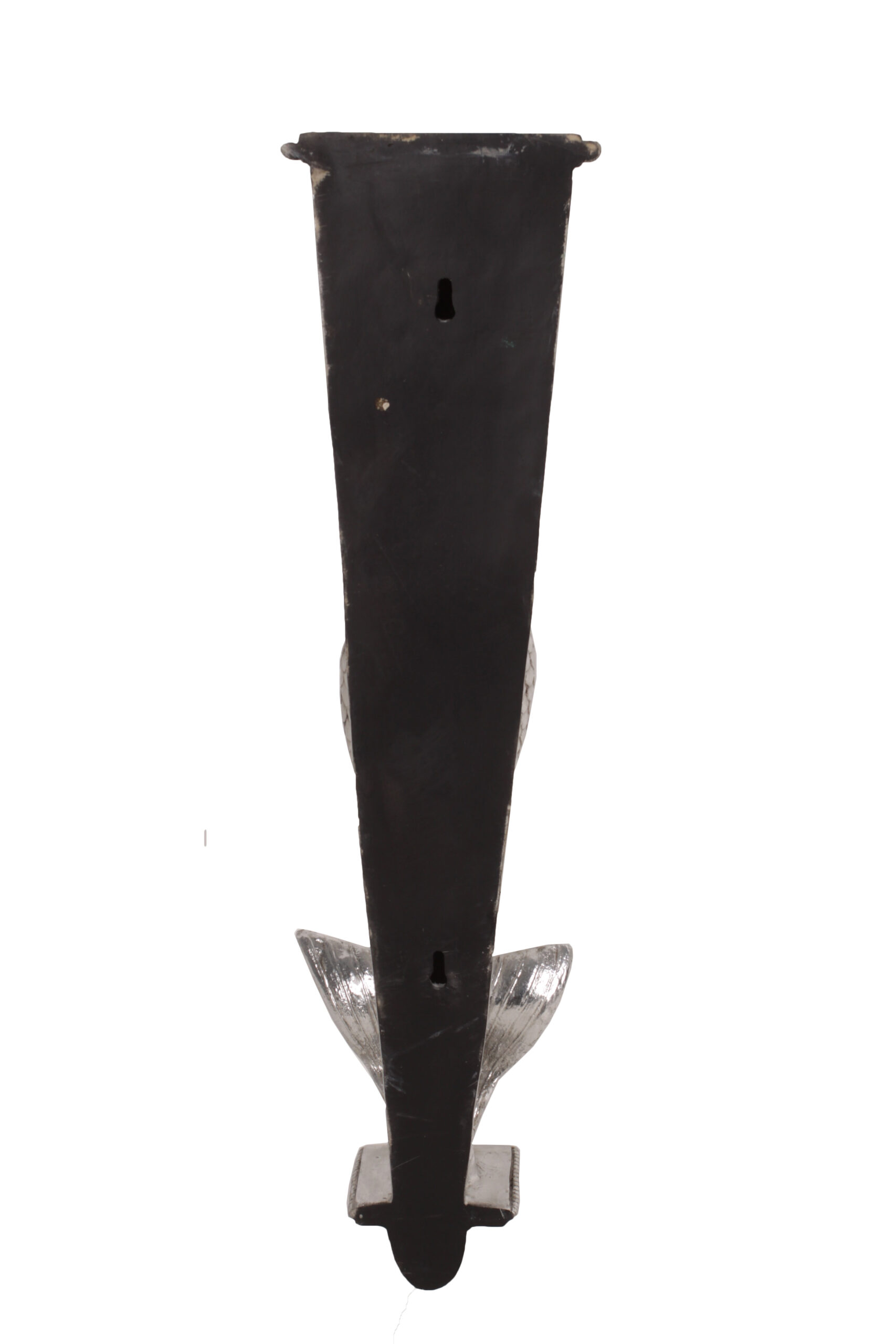 - Fiberglass resin with a hand rubbed bronze with a silver leaf finish