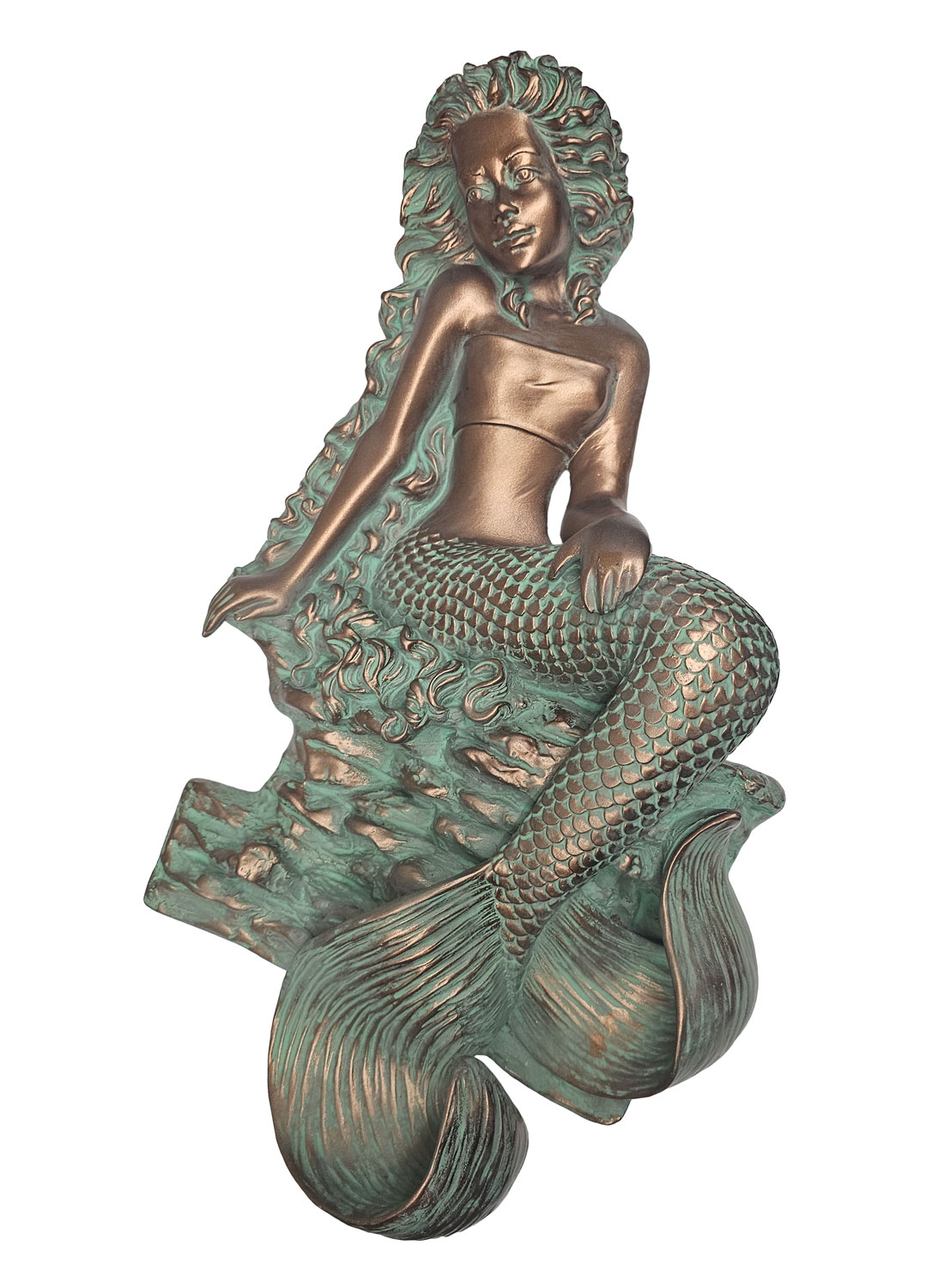 Melody Girl Mermaid Wall Sculpture Young Sea Maiden Art (Verde Bronze)
