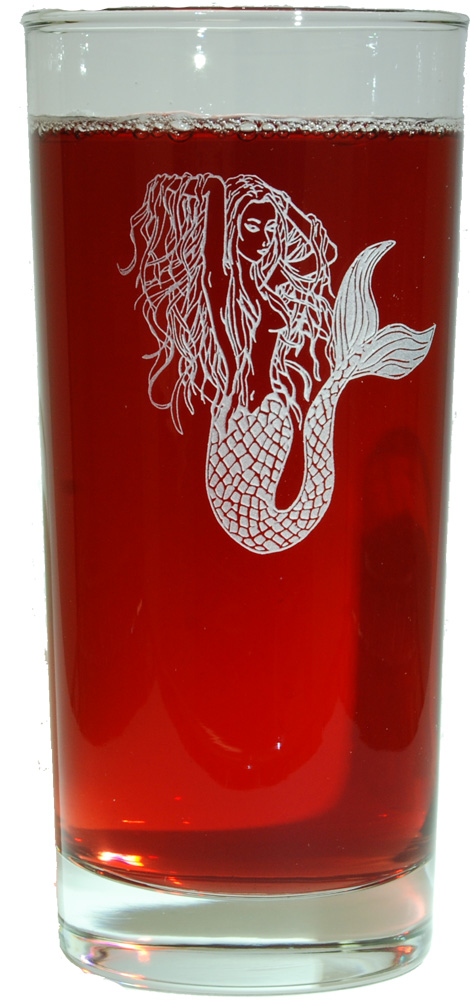 These Set of 4 15oz Mermaid Tall Cooler Glasses would make a great addition to your dining set in your home. The mermaid design is deep sand etched onto the glass and is white. These tall cooler glasses hold up to 15oz of your favorite beverage and measure approx. 6.25”H. Serve your friends and family on the beach with these gorgeous tall cooler glasses. Our exclusive design! Dishwasher safe! *Note: This glassware is clear. Smokiness/shadows are to show the fine detail of the design.*