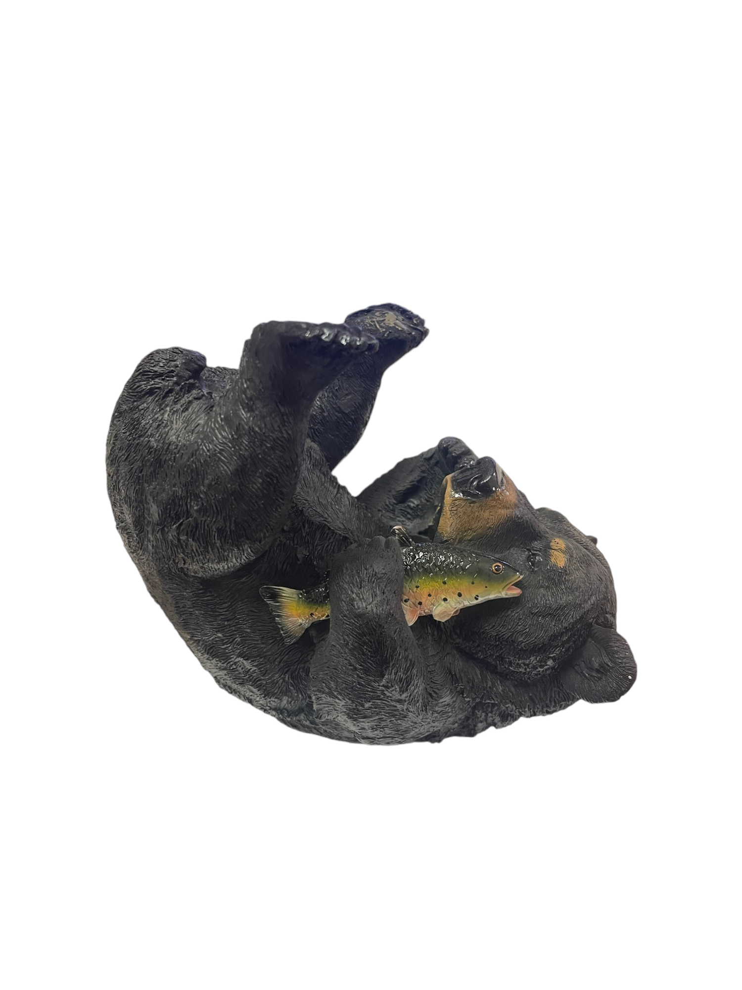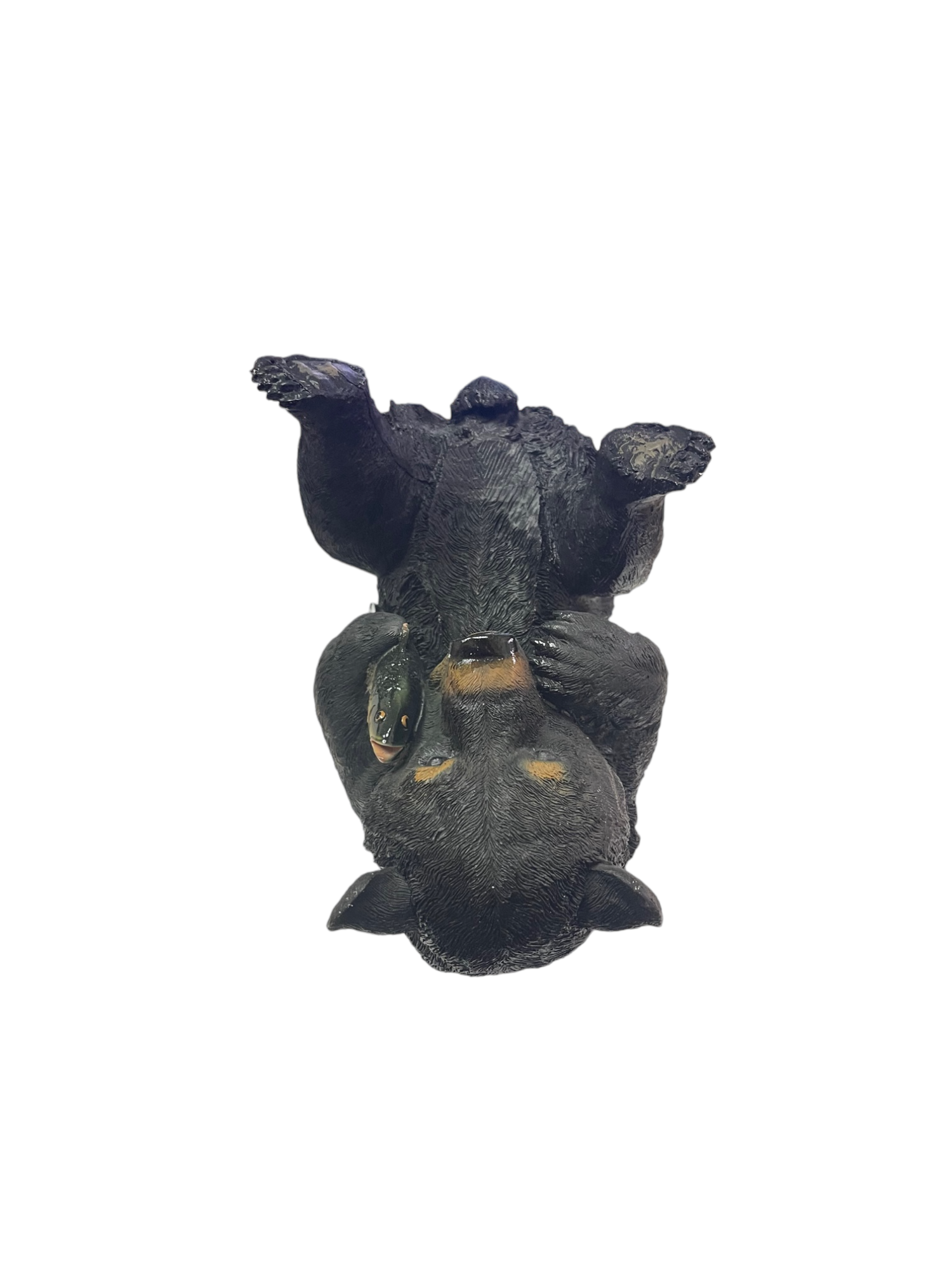 Add some whimsy to your bar with this black bear bottle holder. Made out of poyresin, this bottle holder depicts a black bear on his back with feet in the air drinking while holding a fish. Makes a perfect conversation starting piece or a great addition to your lodge, lake or cabin decor. Measures approx. 8″L x 5″W x 7.5″H.