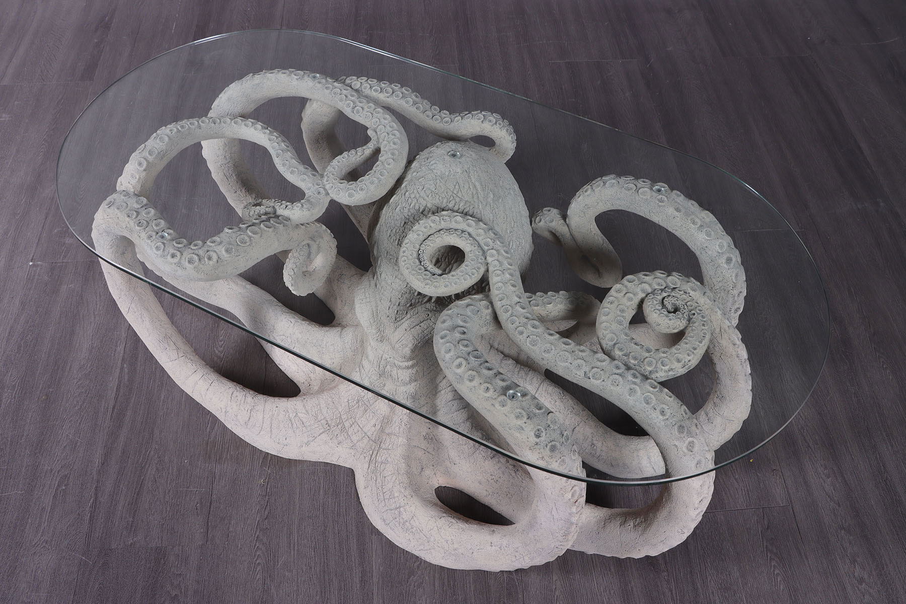 Bring your living space to life with this intricately detailed octopus coffee table. Our realistic and fierce octopus table is constructed out of durable fiberglass resin and features a hand applied roman stone finish. Usage: Indoor – Outdoor (must apply clear coat of UV-Resistant polyurethane for weather protection as needed) Measures approx. 44″L x 22″W x 17.75“H