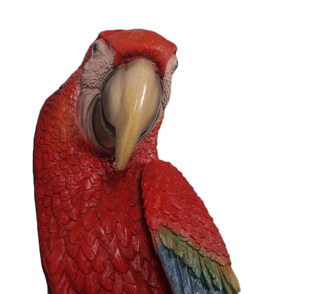 Bring some tropical fun to any room with this stunning Scarlet Macaw Parrot Wall Sculpture. Perched nobly upon his branch, this scarlet macaw is cast from fiberglass resin in striking detail. Features a vibrant hand painted finish that is suitable for both indoors and outdoors. Mounts easily to the wall using the provided key holes on the back. A real conversation piece – perfect for home tiki bars, waiting rooms, living rooms and offices. Measures approx. 10″Lx 6″W x 38″H