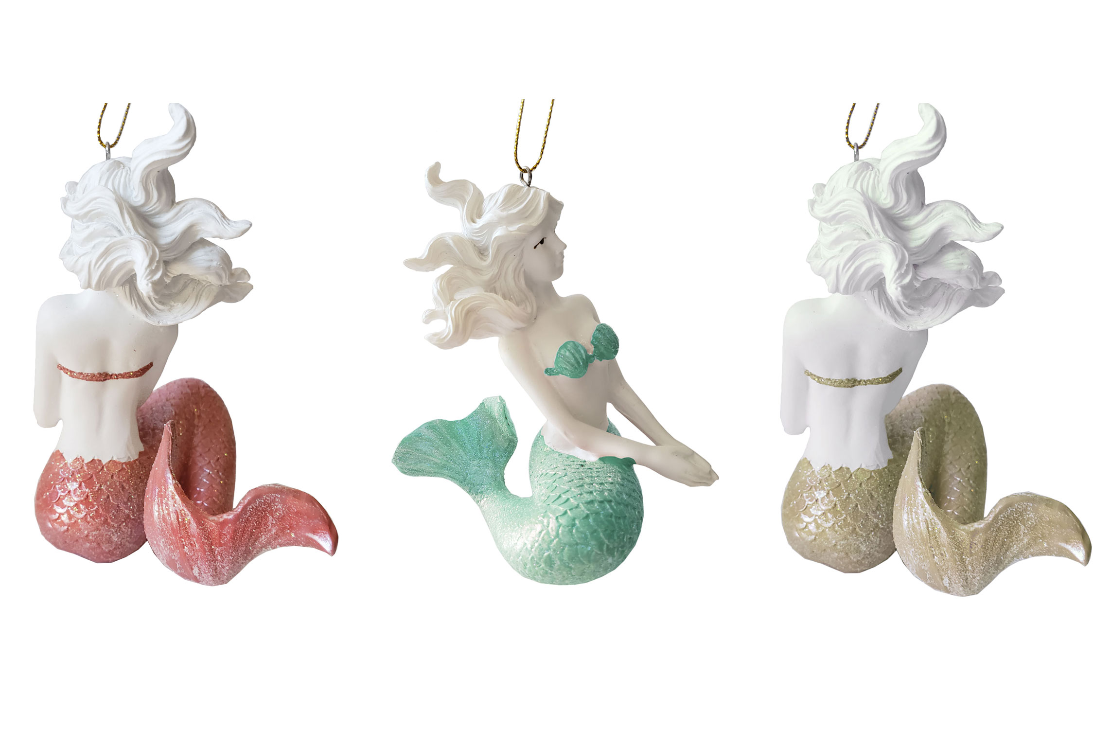 Set of 3 Sitting Mermaid Ornaments In Multiple Colors