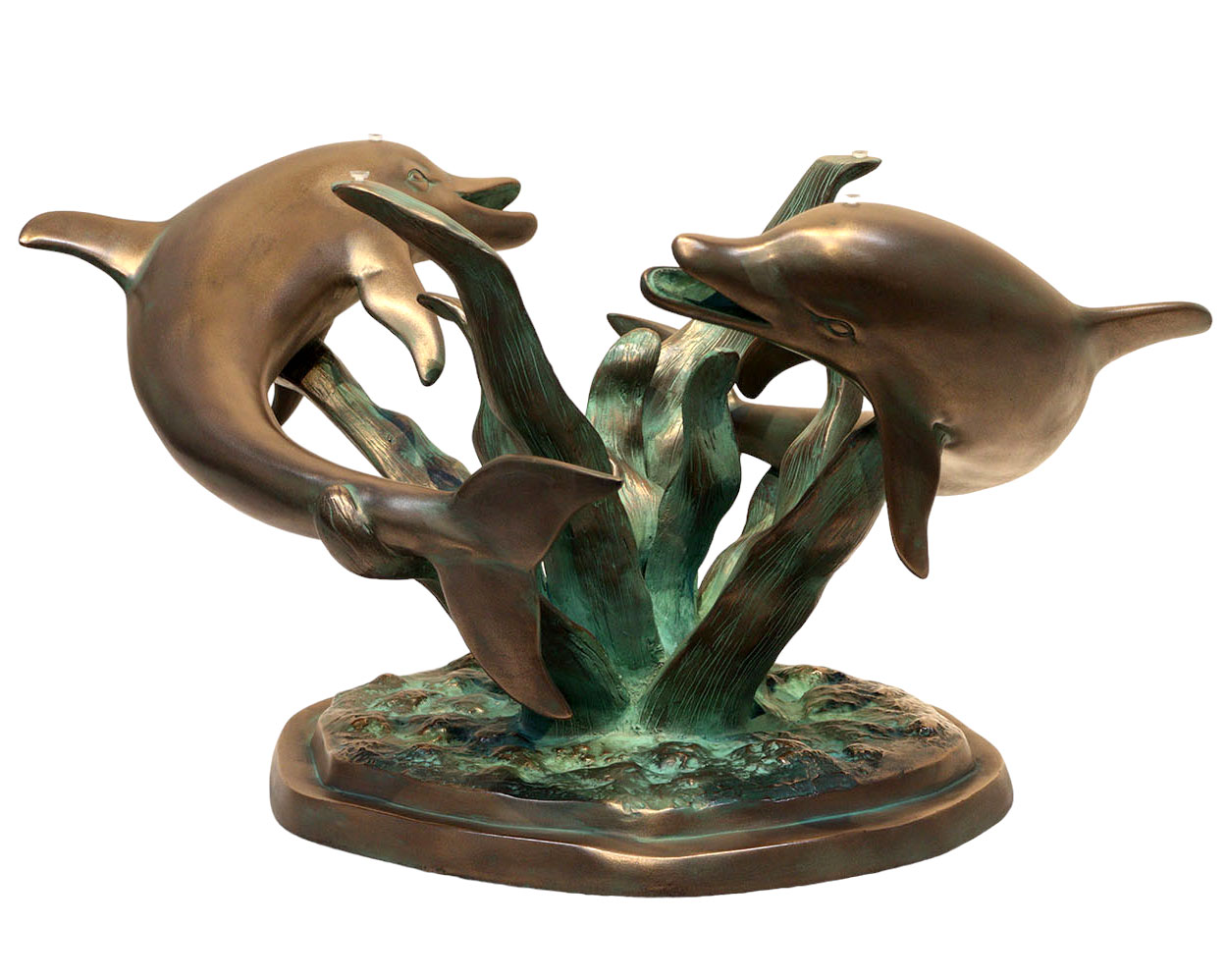 Swimming Dolphins Coffee Table Verde Bronze Finish